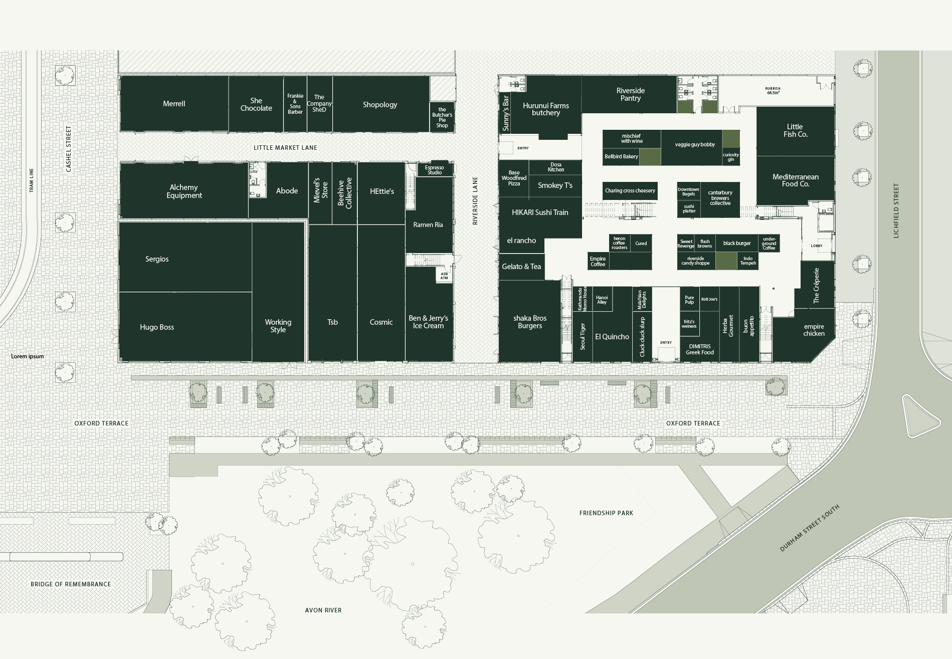 Overlooking the Avon River in the heart of Christchurch, Riverside Market is a fresh take on inner city life with a 7-day-trading indoor market linking into a boutique network of retail, restaurants, cooking schools, cafes and bars.