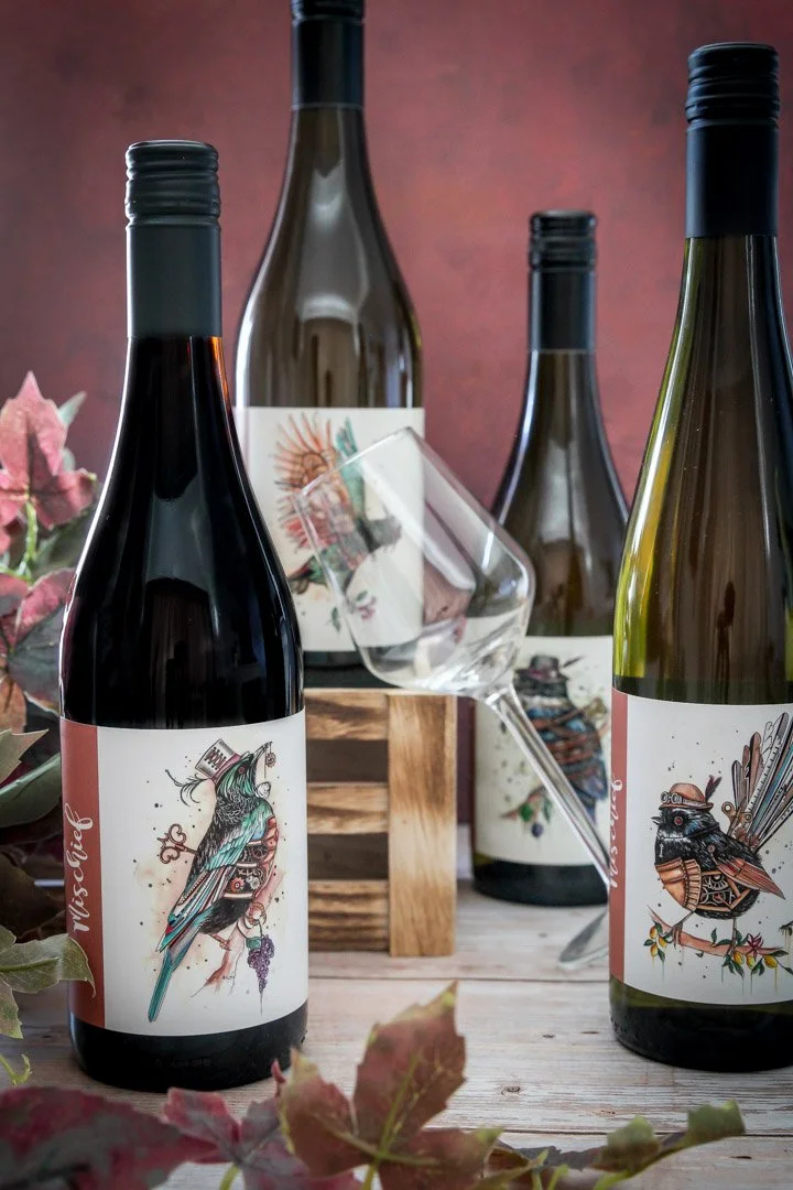 Behind the brand are Adam and Anna, the dynamic duo shaking things up in the wine world. With a decade of experience in the corporate wine scene, Adam is all about breaking boundaries and exploring new possibilities, while Anna brings creativity and personality into everything Mischief touches—from the wines themselves to the brand’s vibrant identity. And of course, no introduction is complete without Pippin—the four-legged boss keeping everyone in check and adding a little extra mischief along the way.